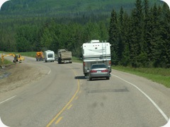 There was a group of ~ 25 Bentley car owners who had a rally in Alaska. They come from all around the world, we talked with some from Sweden and Australia. The pictures were taken when we were stopped by construction for 1/2 hour or so. They are already leaving Alaska, headed South. I’m not sure where they started or going to but I know they were in Prince George, BC, about 1000 miles from where we met them maybe two weeks ago. Nice cars but open with all the dust and rain, not for me.